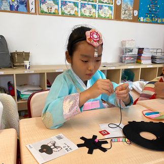 만들기가 조금 어려워 힘들어하던 순간도 있었지만, 완성된 갓을 머리에 써보는 순간 모두의 얼굴에 뿌듯한 미소가 번졌습니다.
